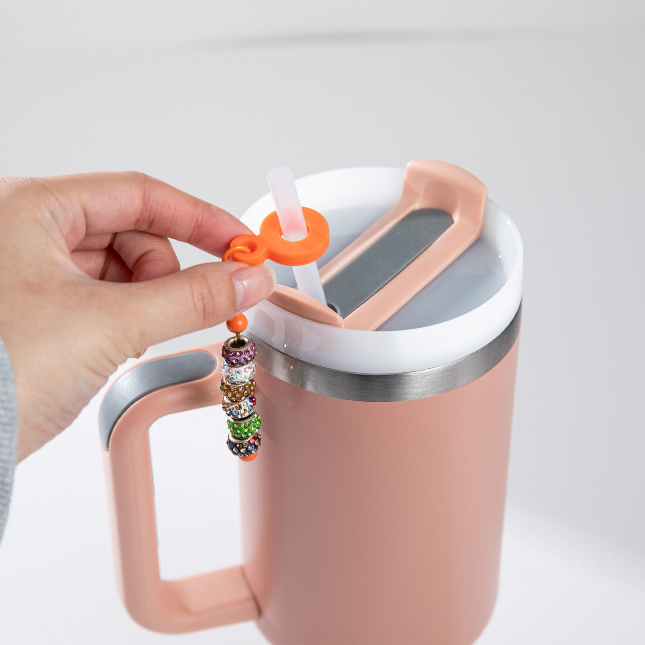 DIY beaded silicone straw pendant is suitable for 8mm-10mm water cup straw.